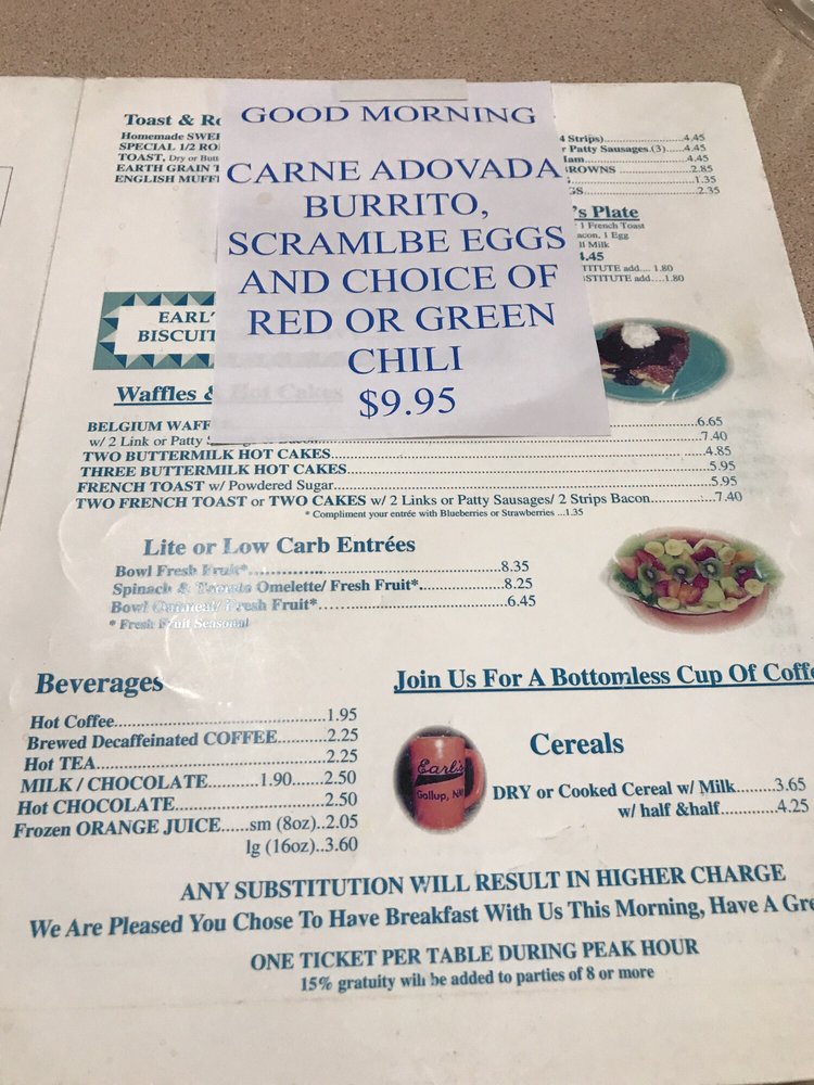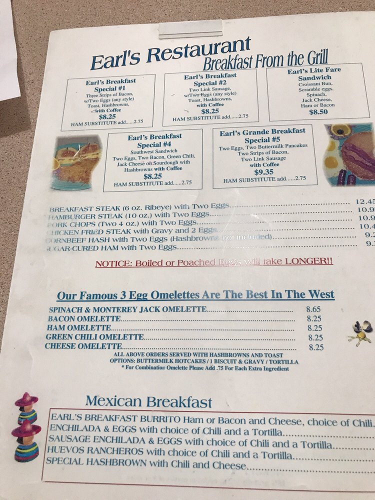 Welcome to Earl's Family Restaurant, a hidden gem serving up American, Mexican, and unclaimed culinary delights in Gallup, NM. With a plethora of options like takeout, delivery, and vegetarian dishes, Earl's caters to all tastes. Their welcoming atmosphere, excellent service, and family-friendly vibe create a homey dining experience. Customers rave about the Navajo Burger, homemade fry bread, and beef stew special. The staff, including server Cassidy, go above and beyond to make patrons feel like family. Earl's is not just a restaurant; it's a community hub where locals and visitors alike can enjoy delicious food and warm hospitality. Don't miss out on the chance to dine at Earl's - it's a dining experience you won't forget.